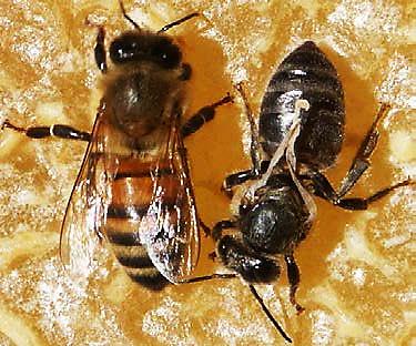 The wings may appear as missing, twisted, or tattered and are definitely not adequate for flight. Sometimes wings are also cloudy, which may be due to cloudy wing virus (CWV).
