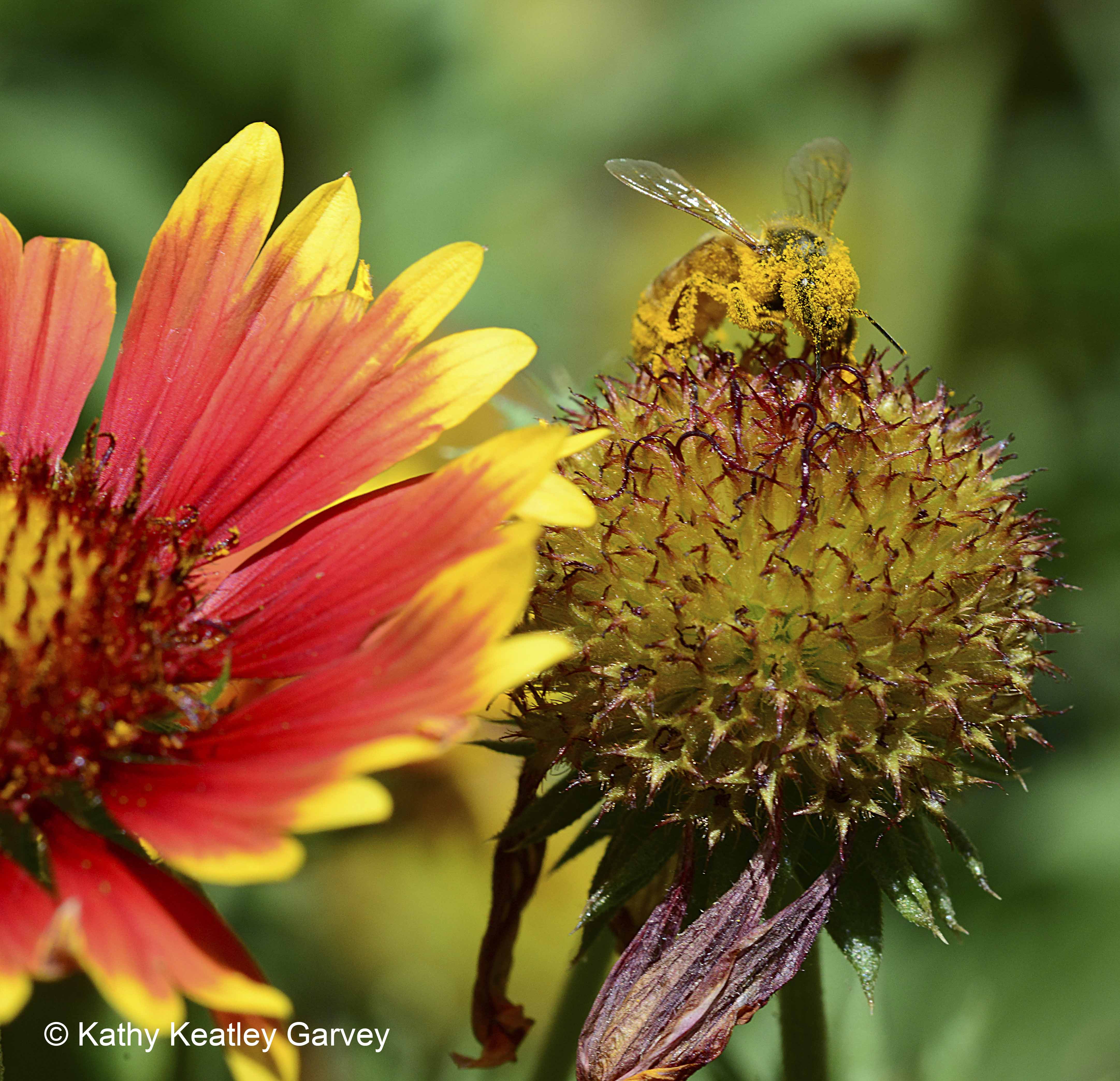 Experienced foraging bees may be recognized by their tattered wing tips, which are due to flying within vegetation to reach flowers. They may also have sparse body hairs.