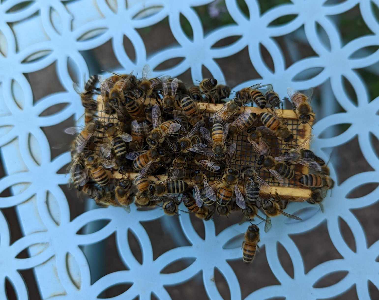 A colony may or may not accept introduction of a new queen or queen cell. It is important to give bees time to get used to the pheromonepheromone: