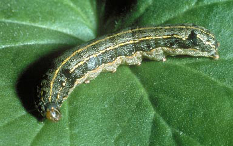 cotton cutworm larva; photo by K. Kiritani, www.bugwood.org