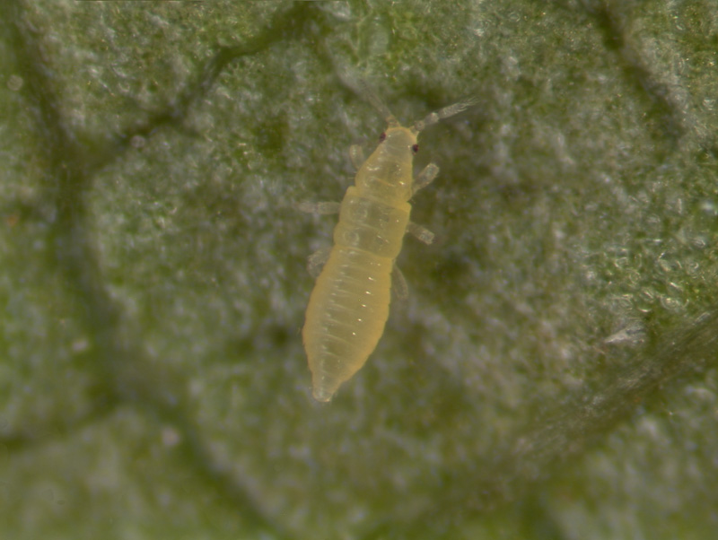 and feeds during its first two larval stages. It then enters a pre-pupal stage and later a pupal stage during which it does not feed. A distinctive feature is that the pupae are found on leaves, in leaf litter, in axils of leaves, or under calyces of flowers and fruit. In contrast to most other thrips species, chilli thrips complete their entire life cycle on the plant. It can complete a life cycle in 14 - 20 days and is capable of reproducing both sexually and asexually (parthenogenesis). It typically has 4 - 8 generations per year.