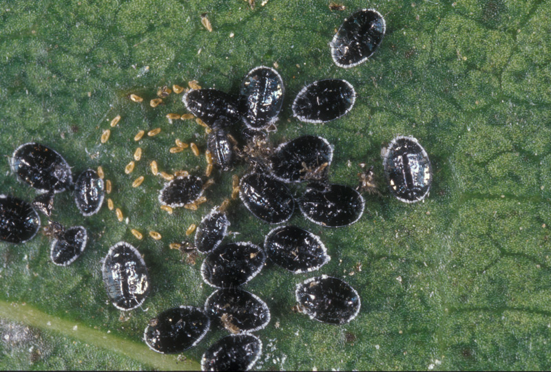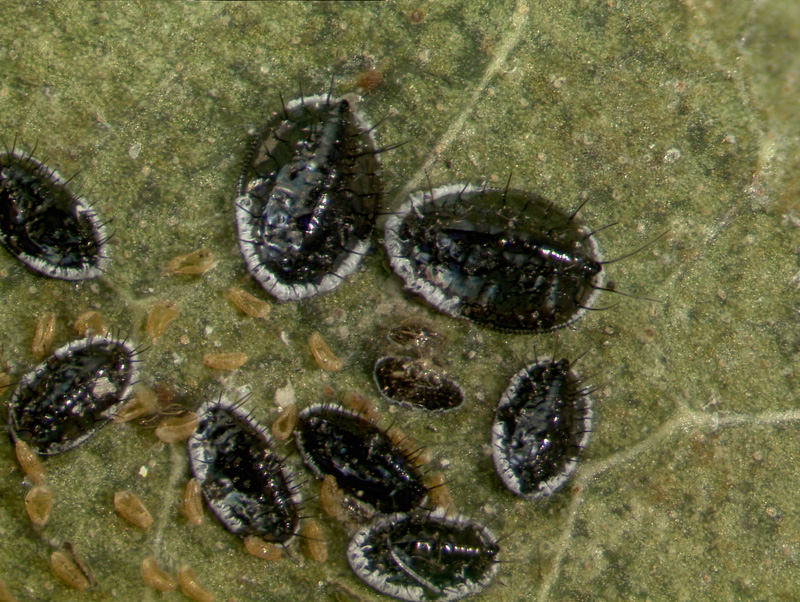 citrus blackfly adult and pupae; photo courtesy of Bayer Pflanzenschutz, www.bugwood.org