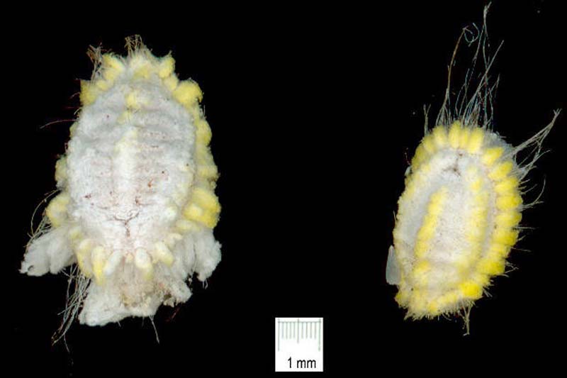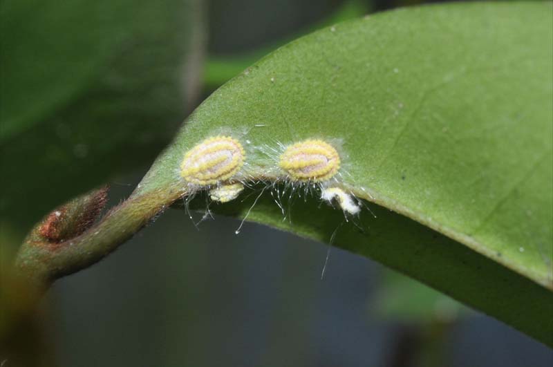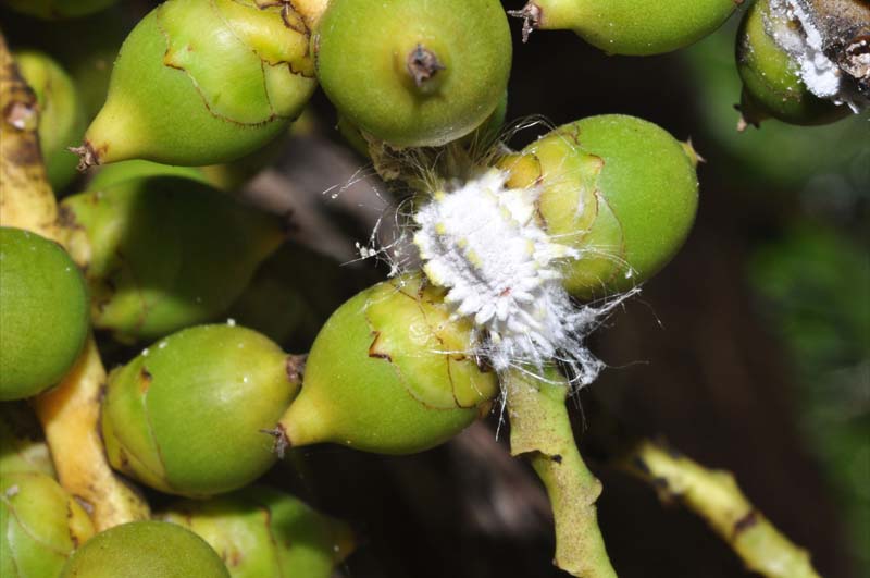 Because of the waxy coating, the Seychelles scale may be confused with some species of mealybugs in the family Pseudococcidae.