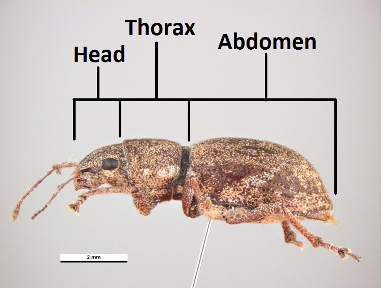 one of the three main body segments in insects; the anterior-most segment containing the many sensory structures including the eyes, antennae, and mouthparts