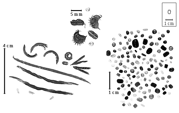 Gillett (1958) monographed Indigofera (including Microcharis (9.04)) in tropical Africa and recognized five subgenera. Kort and Thijsse (1984) noted that Polhill (1981f) treated Indigofera with its two satellite genera Cyamopsis (9.06) and Rhynchotropis (9.03) together with the rather anomalous Madagascan genus Phylloxylon (9.01) (hitherto of unknown affinity) in tribe Indigofereae. Schrire (1995) performed extensive cladistic analyses with the Indigofereae genera and Indigofera infrageneric taxa. He concluded that I. subgen. Indigastrum (H.F. Jaubert & É. Spach) J.B. Gillett, I. subgen. Microcharis (G. Bentham) J.B. Gillett, Cyamopsis, and Rhynchotropsis formed a sister clade to the remainder of Indigofera, so he reinstated the aforementioned Indigofera subgenera as genera, Indigastrum H.F. Jaubert & É. Spach (9.05) and Microcharis. Pending a general expression of opinion by the botanical community concerning Shrire's changes, we have chosen to present Indigofera with its traditional circumscription (Gillett, 1958, 1971; Polhill 1981f). Choi and Kim (1997) equenced the ITS region of six Indigofera species, and concluded that the ITS sequence will be useful for understanding Indigofera classification and evolution. We had for study only seeds of three species of I. subgen. Indigastrum, Indigofera argyraea C.F. Ecklon & C.L.P. Zeyher (Indigastrum argyraeum (C.F. Ecklon & C.L.P. Zeyher) B.D. Schrire), Indigofera fastigiata E.H.F. Meyer (Indigastrum fastigiatum (E.H.F. Meyer) B.D. Schrire), and Indigofera parvifolia B. Heyne ex R. Wright & G.A.W. Arnott (Indigastrum parvifolium (B. Heyne ex R. Wright & G.A.W. Arnott) B.D. Schrire), and of one species of I. subgen. Microcharis, Indigofera disjuncta J.B. Gillett (Microcharis disjunta (J.B. Gillett) B.D. Schrire). The seed characteristics of these four species were congruent with those of the other 83 Indigofera species studied. The dark spots on the outer endocarp surface are "groups of swollen coloured cells rich in tannin" (Gillett, 1958, p.2), and they can form pits in the seeds. The fruits of species such as I. cryptantha G. Bentham ex W.H. Harvey, and D.A.P. Watt & Brandwijk appear to be loments, but this is not true. These fruits are dehiscent legumes and not loments separating into articles.