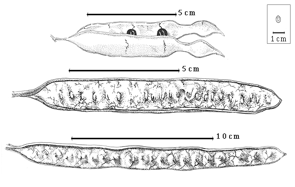 Fruit: A legume; unilocular; (7–)9–38 cm long (Hughes, 1998aHughes, 1998a:
