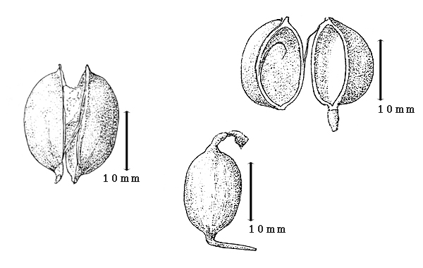 Seed: Ca. 12 mm long; 8–9 mm wide; not overgrown; not angular; symmetrical; elliptic; compressed.