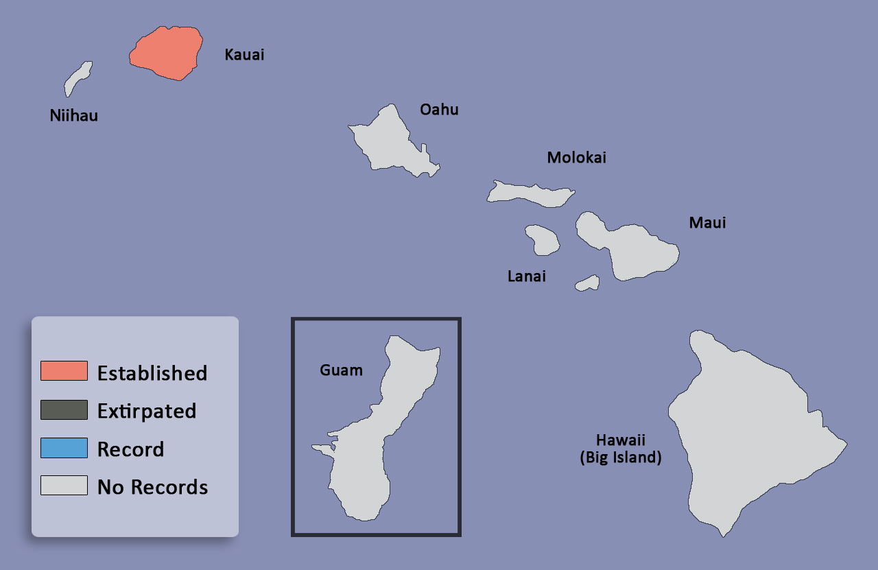 Not established or recorded. There are no records of this species from Guam.