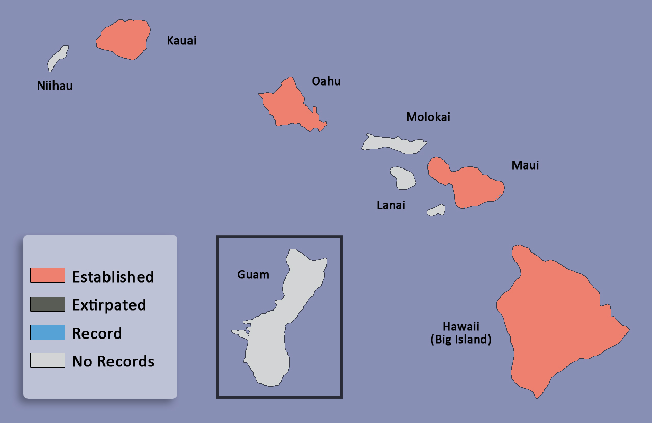 Established. This species was intentionally released in 1957-1958 on Big Island and Oahu (Markin and Yoshioka, 1998Markin and Yoshioka, 1998: