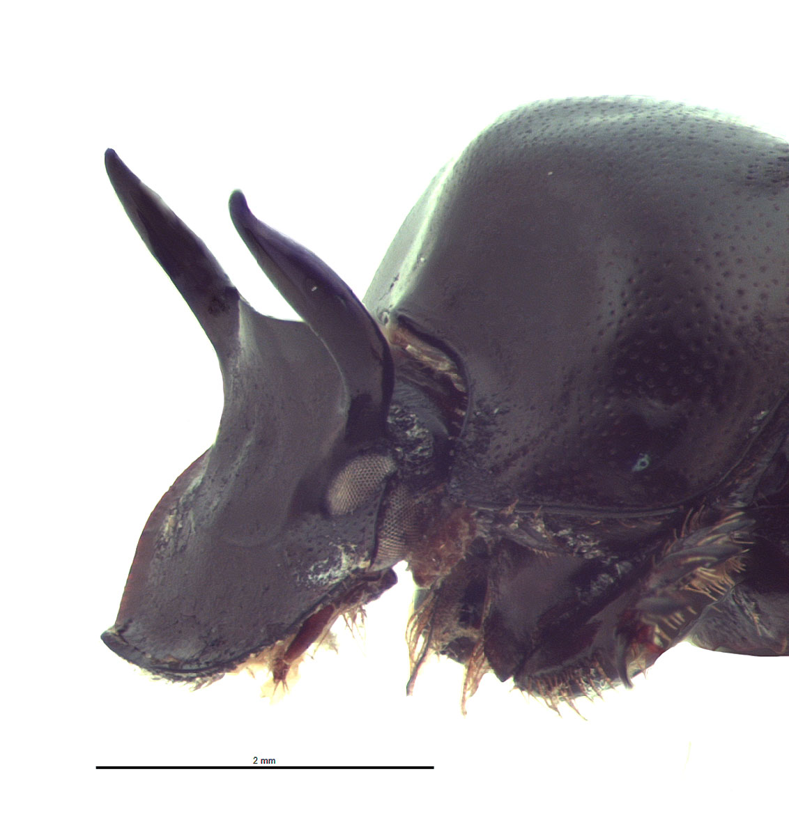 Major males of these species can readily be distinguished by examining the head armature (O. armatus with vertical, bisinuatebisinuate: