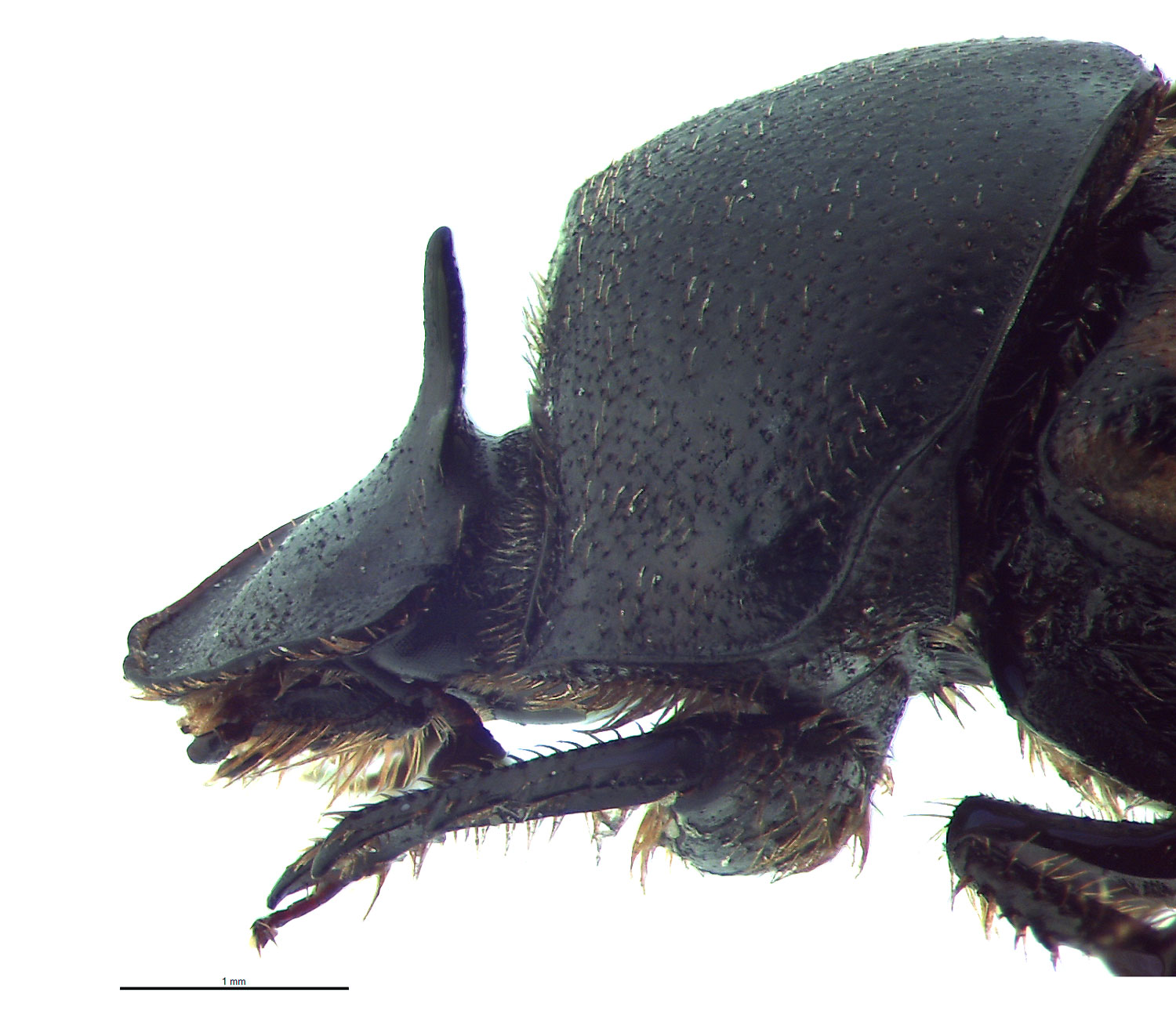 Males of these species can quickly be distinguished by examining the head armature (O. nuchicornis with single spine-like horn versus O. foliaceus with a single, long, forward curving horn; O. granulatus lacking horn, but with an almost vertically produced clypealclypeal: