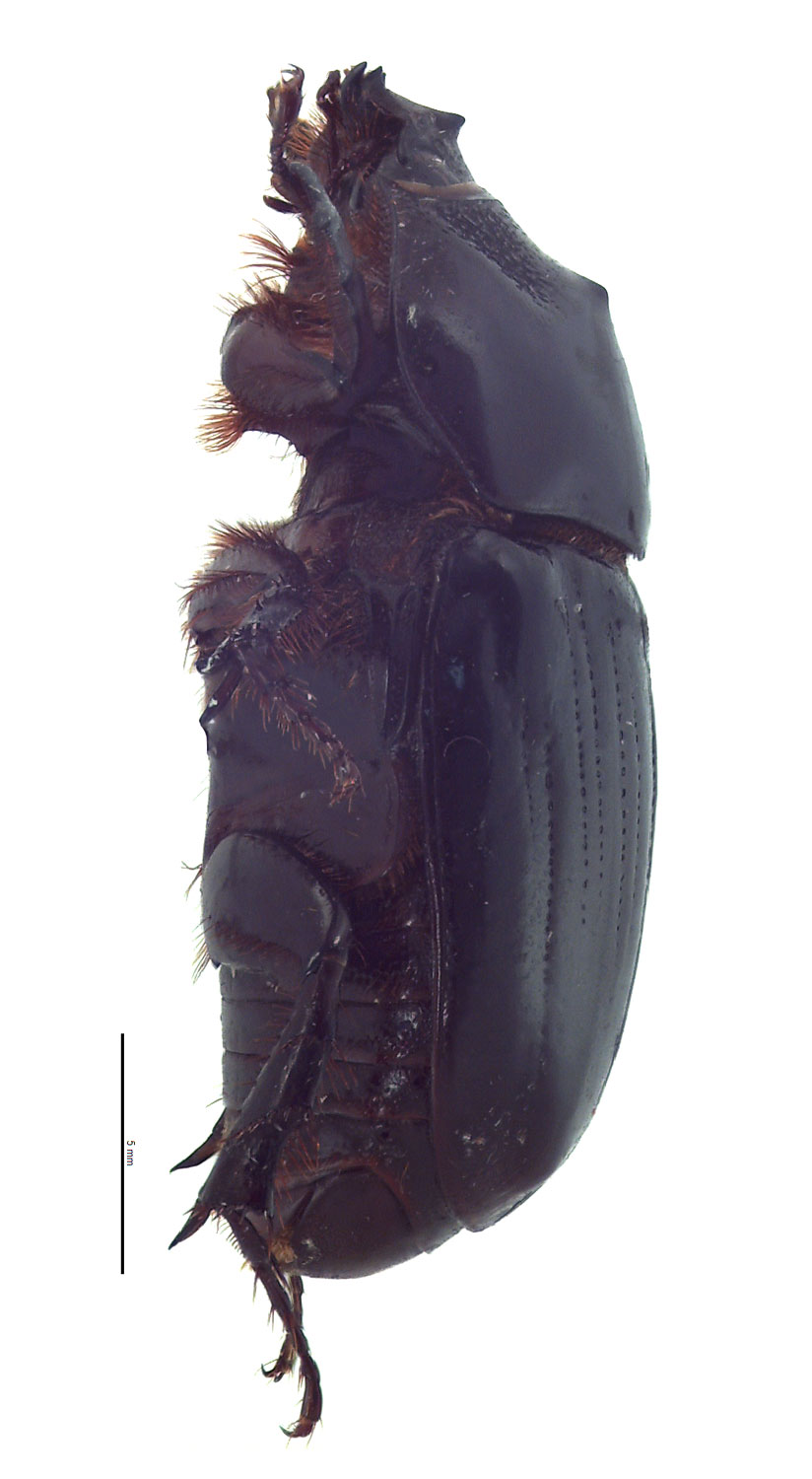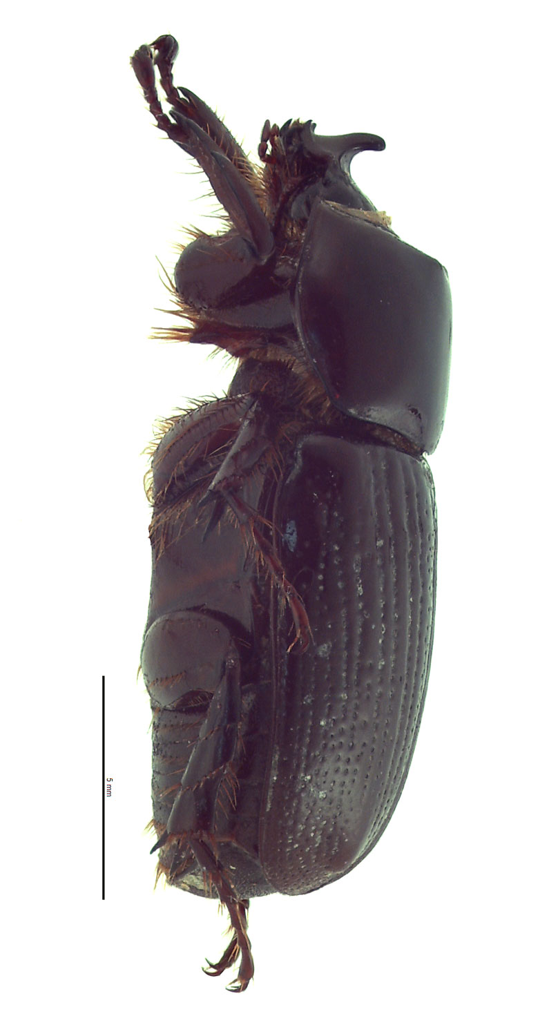 Papuana is a genus of medium-sized scarab beetles that are armed with horns or tubercles. All species are shiny black and have an elongated, oval body shape. Total body length ranges between 15.0–30.0 mm (0.59–1.18 in). The apexapex: