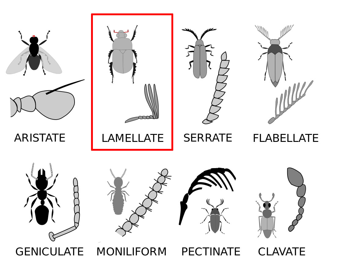 are very characteristic for scarab beetles, but other beetle groups with similar antennaeantennae: