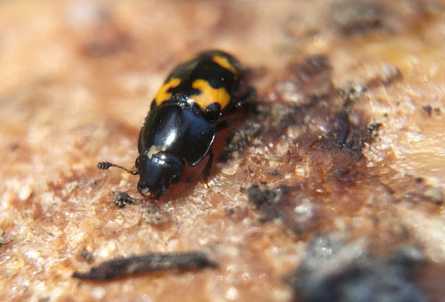 may still fool you. Picnic beetles (or sap beetles; Nitidulidae) resemble scarabs and may be found in ripe fruit along with Asian flower beetles (Protaetia species). Some darkling beetles (such as Bolitotherus species; Tenebrionidae) have a similar appearance to scarabs that you might encounter in rotting wood or on the soil surface. Beneficial beetles found in dung include scarabaeoid dung beetles as well as water scavenger beetles (such as Sphaeridium species; Hydrophilidae) and clown beetles (or hister beetles such as Hister species; Histeridae). You can use the gallery to browse images to make certain that your specimen is a scarab beetle. Useful resources for scarab beetle identification (families, subfamilies, tribes, and genera) include the Generic Guide to New World Scarab Beetles and BugGuide.